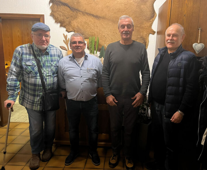 v.l.n.r.: 2. Platz: Arno Schmitt (Skatwerkstatt St. Wendel), Sieger: Christian Beck (Herz Dame Schönberg), 3. Platz: Klaus Eiden (Reinsfeld), Matthias Uttard (Vorsitzender „Herz Dame Schönberg)